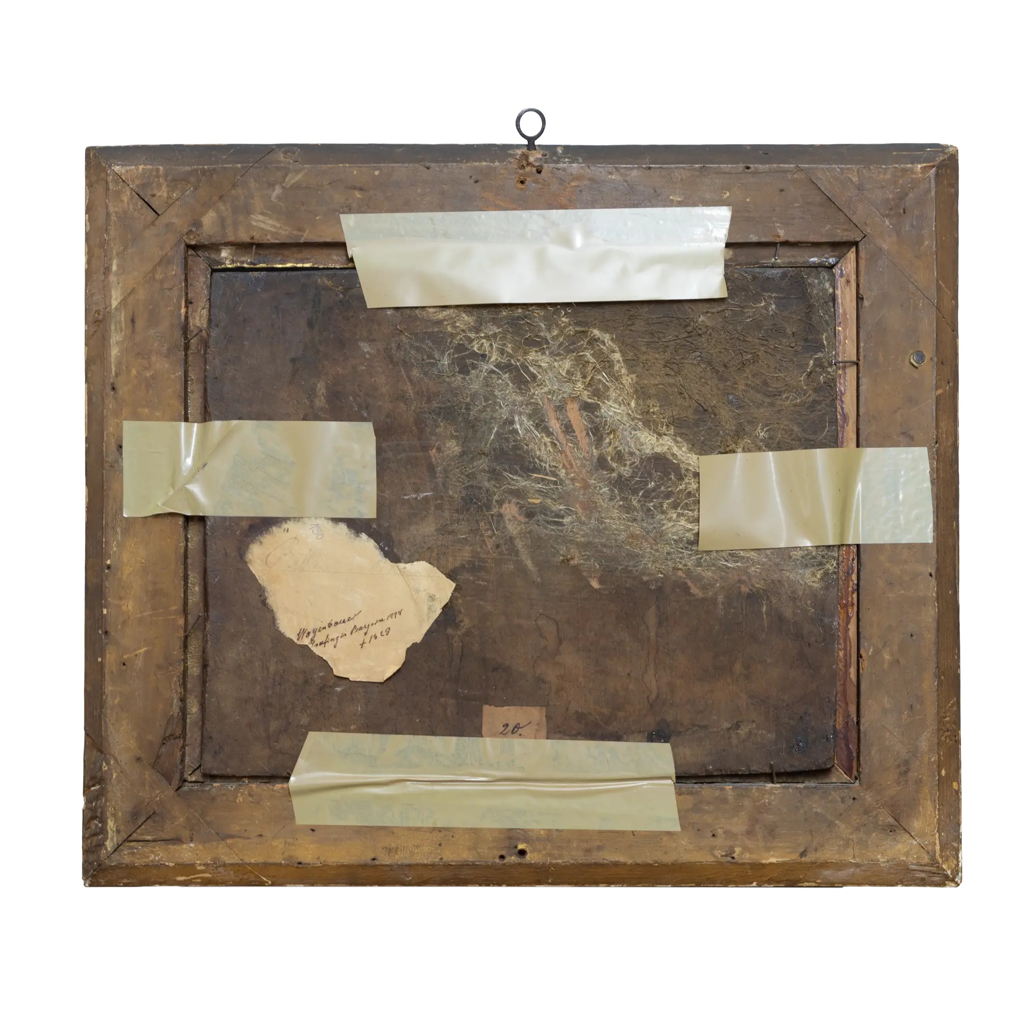 Zustand: Altersgemäß sehr guter Zustand, rückseitig mit historischem Etikett und handschriftlichen Vermerken zur Provenienz.