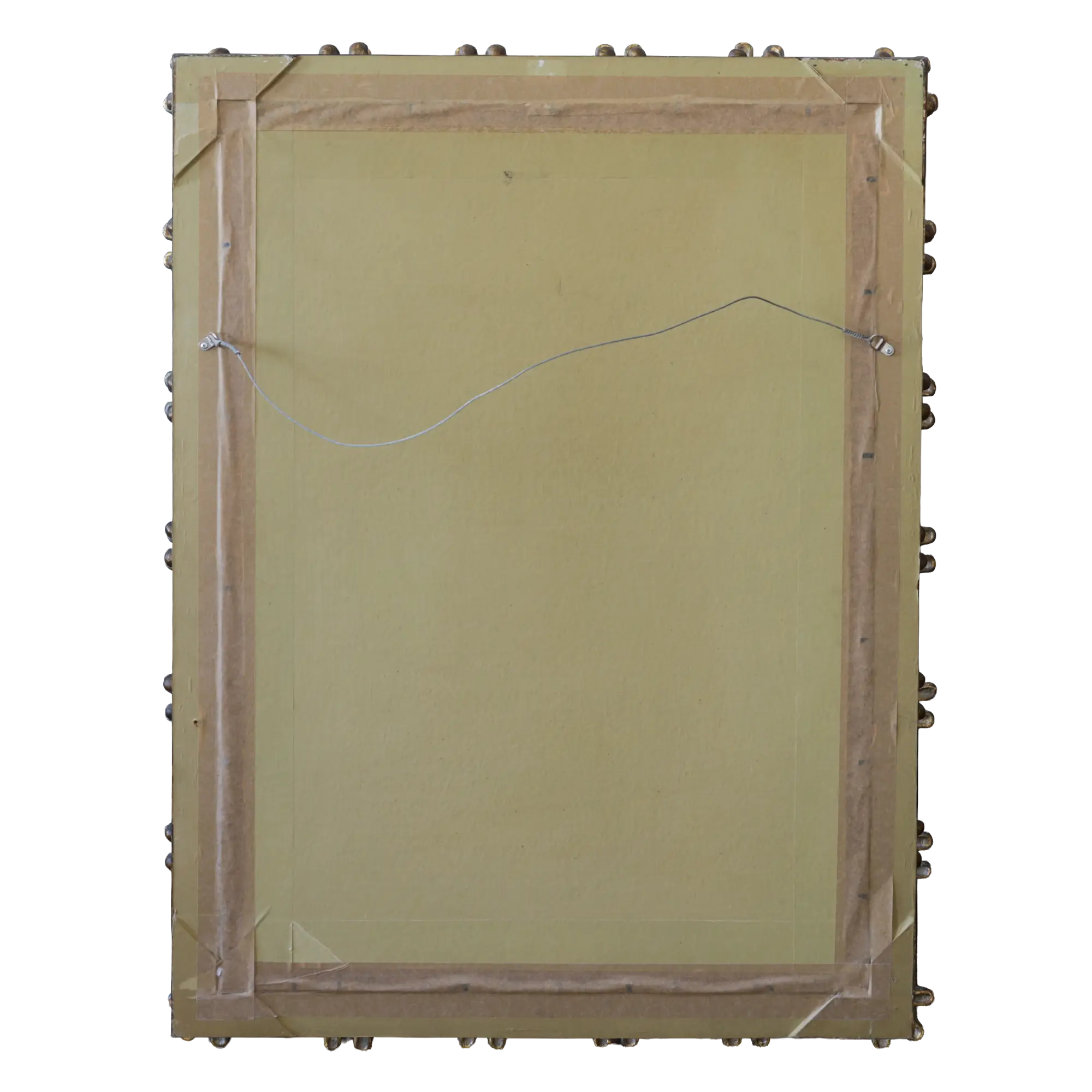 Die Farbigkeit ist erdig und warm, was dem Bild eine rustikale und zugleich andächtige Aura verleiht. Das Gemälde ist in einem außergewöhnlichen, profilierten Holzrahmen montiert, dessen Struktur den Charakter des Bildes perfekt unterstreicht.